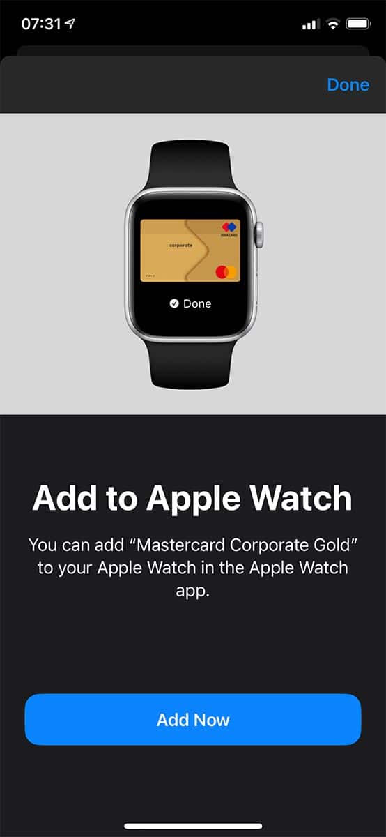 הוספת כרטיס אשראי לשעון ה- Apple Watch